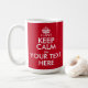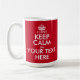 Ich kann ruhigen kundengerechten Text der Kaffee-Tasse nicht behalten |. Personalisiert behalten Sie Ruhe und Ihre Textreise-Tassen, Ihr eigenes lustiges Ruhe behalten und Parodie weitermachen zu lassen. Vintager Keepcalm Typografieentwurf. Kundenspezifisches Hintergrundfarbie-Rot. Personalizable Schablone. Andere Gewohnheitsfarben und Vintage keepcalmandcarryon Entwürfe sind auch verfügbar. Spaßbeispiele: Ich kann Ruhe nicht behalten, die es mein Geburtstag ist. Ich kann Ruhe nicht behalten, die ich verheiratet erhalte. Ich kann Ruhe nicht behalten, die ich ein Gamer bin. Ich kann Ruhe nicht behalten, die, ich an… mir kippe behalte Ruhe weil… kleine und große Größenschale bearbeite. Große riesige ExtraTasse.