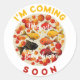 Ich komme bald zur Funny Red Cherry Fish Baby Dusc Runder Aufkleber