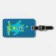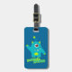 Niedliches Kleinkindergepäck-Label mit einem mit Augen Alien-Monster in Aqua Blue Green. Reads Ich komme in Frieden. Einzigartig entworfen von Sarah Trett für mein kleines Eden.