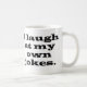 Hörten Sie das über die Person, die an seinen eigenen Witzen lachte? Er kaufte diese Tasse, um sie zur Welt zu annoncieren. Die große, mutige, schwarze Beschriftung liest, "ich lache an meinen eigenen Witzen." Das erinnert mich… Ein Priester, ein Rabbiner und ein Minister, die auf Zazzle und jedes von ihnen aufgezeichnet wurden, bestellten diese Tasse. Was? Sagten Sie etwas? Sie werden oben sprechen müssen. Ich kann Sie über dem Ton meines eigenen Gelächters nicht hören.