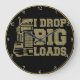 Diese kühne Wanduhr bietet eine humorvolle, zackige Nachricht für den erfahrenen LKW-Fahrer. Vor schwarzem Hintergrund, gerahmt von einem goldgelben Rand, zeigt es eine stilisierte Halbwagengrafik. Der Text "I DROP BIG LOADS" wird in einem bedrückten, goldgelben Schriftart hervorgehoben, was eine spielerische und etwas eindrucksvolle Aussage über die Art ihrer Arbeit macht.
