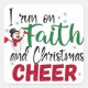 Dieser niedliche Weihnachtsaufkleber sagt "Ich laufe auf dem Glauben und Weihnachtskauer" in festlichen Weihnachtsfarben in Rot und Grün mit einem fröhlichen Schneemann-Detail.