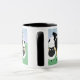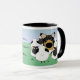 Titel liest, "ich in Herden leben… Deshalb bin kennzeichne ich…" und einen Tri Farbeglatten Collien, der durch seine Menge der Schafe umgeben wird. Die Rückseite der Tasse hat auch eine Spiegelbildansicht von, was auf der Front erscheint und das hintere Ende des glatten Collien und seiner Schafe zeigt.