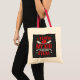 Humorer Baseball Tote Tasche mit rot-weißem Text liest I Teach My Kid to Hit and Steal.