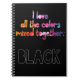 Dieses schlichte schwarze Notizbuch enthält eine Aquarellschrift, die lautet: "Ich Liebe alle Farbe gemischt" und das Wort "BLACK" in allen Kaps schwarzen Schriftart mit einer weißen Kontur. Es ist perfekt für jeden schwarzen Lover.