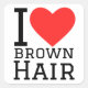 Ich Liebe braunes Haar Quadratischer Aufkleber