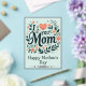 Feiern Sie die beste Mutter der Welt mit dieser atemberaubenden Muttertagskarte "Ich liebe dich, Mama". Die Vorderseite zeigt einen üppigen, garteninspirierten Kranz aus pfirsichfarbenen und gelben Blumen, durchwoben mit tiefem Teal-Laub und einem süßen korallenroten Herzen. Diese elegante, hochwertige Karte mit leicht grünem Hintergrund ist die perfekte Art, ihr zu sagen, wie sehr Sie sie lieben.