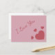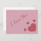 Eine Postkarte mit roten Herzen und romantische Botschaft "I Liebe you". Perfekt für den Valentinstag, um einem Liebsten ein Geschenk zu machen, zum Geburtstag eines Liebhabers.