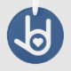 Weiße "I Liebe You" Handform mit einem Herz innen vor blauem Hintergrund.