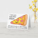 Niedliche Karte für die, die Sie Liebe. Ein lustiges Stück Pizza mit gelbem Käse, rosa Pepperoni, knuspriger, dicker Kruste und einem fröhlichen Gesicht. In der oben links Ecke sind die Worte, die ich Sie mehr als Pizza in Liebe in schwarzem Text.