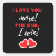 Ich Liebe dir mehr! Das Ende. Ich gewinne! Quadratischer Aufkleber