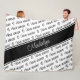 Diese soccer-thematische Fleecedecke für Mädchen enthält den Text "I Liebe Soccer" in einem lässigen handgeschriebenen Schriftart, mit , schwarzen, gemusterten Herzformen auf weißem Hintergrund - personalisieren Sie mit ihrem Namen auf einem grobkörnigen Farbstreifen in voller Breite - Hintergrund, verworrener Farbstreifen und personalisierte Textfarbe können in JEDE Farbe geändert werden - wählen Sie eine Hintergrundfarbe, die mit dem schwarzen Textmuster kontrastiert - katz d_zynes