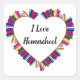 Ich Liebe, Hausschule, Schulkinder, Herz-Bücherreg Quadratischer Aufkleber