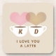 Ein niedliches "I Liebe you a latte" personalisiertes Drink Untersetzer Design für Kaffeeliebhaber. Enthält zwei Kaffeetassen mit hellrosa und lattbraunem, herzförmigen Dampf und cremefarbenem Hintergrund. Personalisieren Sie den benutzerdefinierten Text mit den Initialen des Ehepaares.