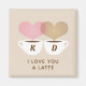 Ein niedliches "I Liebe you a latte" personalisiertes Küchenmagnet-Design für Kaffeeliebhaber. Zwei Kaffeetassen mit hellrosa und lattbraunem, herzförmigen Dampf und cremefarbenem Hintergrund. Personalisieren Sie den benutzerdefinierten Text mit den Initialen des Ehepaares.