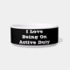 Pet Bowl Lebensmittel- und Wassercontainer mit Schwarzer Hintergrundfarbe und Weißbuchstabenfarbe bedruckt mit individualisierbarem Template Text Phrase I Liebe Being On Active Duty on Hats, Shirts und Pet Products von The FabricSeal Print on Demand Shop unter Zazzle.com #ZazzleMade https://www.zazzle.com/store/thefabricseal Jedes Tier benötigt eine eigene Schüssel aus Zazzle! Gedruckt mit unseren Designs oder mit Ihren Lieblings-Fotos, Texten und Designs, Ihr Haustier wird unsere 100% Keramik Schalen Liebe. Geschirrspüler und Mikrowelle zugelassen, diese Schalen sind leicht behalten. Zwei Größen sind erhältlich, mittel und groß. Ich ♥️ die Liebe, aktiv zu sein. Diese lustigen Hüte, Shirts und Heimtierprodukte werden Ihnen gelassen zeigen, wie sehr Sie Ihre emotionale und körperliche Unterstützung, die Tieren und Ihren Freunden hilft, Liebe geben. Diese sind wunderbar geschult und unterstützen Tiere für Komfort, Therapie, Freundschaft, emotionale und körperliche Unterstützung. Sie helfen mit eingeschränkten Fähigkeiten und Behinderungen mit Mitgefühl und arbeiten zusammen und sind auch großartige Helfer, da sie als blind sehende Blindenhunde dort sind. Dieses Accessoire ist ein perfektes Geschenk für Damen, Herren, Teens & Kids, die einen unterstützenden Kumpel besitzen & Liebe. Wenn Sie der stolze Besitzer sind und diese phantastischen tollen Kreaturen und Freunde Liebe haben, dann ist dieses Design für Sie und Sie können unsere große Kollektion anderer Produkte, die wir in unserem POD-Shop in Zazzle anbieten, ergänzen und übertragen. Karo sie alle raus. Karo in unsere 400 + großartige Originale Designs und Produktkollektionen aus unserem Flagship Select Products Store und dem Neckties Store. Große Geschenkauswahl für Familie, Freunde und natürlich für Sie selbst. All dies inklusive Anpassungsoptionen. Personalisieren Sie mit Ihrem eigenen Design, Monogramm, Name, Muster, Foto, Zitat oder Slogan. Vielen Dank für Ihre Auswahl und den Einkauf bei uns. Wir freuen uns über Ihre Unterstützung. Genießen Sie Ihr Einkaufserlebnis. Bestelle noch heute.