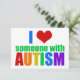 Ich Liebe jemanden mit Autismus-Karte Unterstützung für die besondere autistische Person in Ihrem Leben. Ein großartiges Geschenk für Eltern eines besonderen bedürftigen Kindes mit Autismus oder Asperger-Syndrom. Ich Liebe meinen autistischen Sohn oder meine autistische Tochter. Auch ein nettes Geschenk für eine Schwester oder einen Freund.