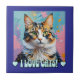 Dieses lebendige Design besticht durch eine auffallende Katzenkatze aus Kalico vor einem kühnen rosa, blauen und lila Hintergrund. Mit der spielerischen I Liebe Cats! Texten und charmanten Herzakzenten ist es ein perfektes Statement für Katzenliebhaber, die Kunst mit einem farbigen Pop schätzen!