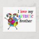 Ich Liebe Mein Autistischer Bruder Design wird helfen, Autismus Bewusstsein zu verbreiten! Autismus wird eines Tages jemanden beeinflussen, den wir alle kennen und Liebe. Eines von 150 geborenen Kindern wird Autismus diagnostiziert. Wir denken, es ist an der Zeit, etwas dagegen zu tun. Verteilen Sie das Wort mit unseren T - Shirt zur Sensibilisierung für Autismus. Design gibt es für Karosseriebücher, T-Shirts, Langärmeln-T-Shirts, Tasse-Karten, Magnete, Aufkleber, Tasten, Schlüsselanhänger, Totbeutel und vieles mehr.