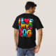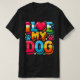 Im Design des T - Shirt wird der Satz "I Liebe My Dog" in fett gedruckter, spielerischer Schrift dargestellt, wobei das Wort "Liebe" durch ein Herzsymbol ersetzt wird. Unter oder um den Text herum gibt es niedliche, mit Hunden verwandte Illustrationen, wie Pfotenabdrücke, Knochen oder eine Silhouette eines Hundes. Das Design verleiht dem Hundeliebhaber ein warmes, unterhaltsames Ambiente, damit er seine Zuneigung für seine wütenden Begleiter ausdrücken kann. Die Farbpalette ist einfach und fröhlich, mit kontrastfarbenen Farben, um den Design-Pop auf verschiedenen T - Shirt-Hintergründen zu machen.