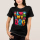 Das Design des T - Shirt enthält den Satz "I Liebe My Dog" in fett gedruckter, spielerischer Typografie. Das Wort "Liebe" wird durch ein großes rotes Herz repräsentiert und verleiht dem Wort einen lebendigen Pop. Um den Text herum sind niedlich, Pfotenabdrücke und kleine Hundeabbildungen wie Knochen und ein Hundehalsband. Das Design ist schlicht, gemütlich und perfekt, um die Zuneigung eines Hundebesitzers in einem lässigen und unterhaltsamen Stil auszudrücken.