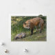 Ein Rotfuchs-Kit sieht liebevoll auf seine Mutter.