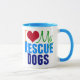 Ein niedliches Geschenk für einen Besitzer, der süße Hunde aus dem Tierheim retten und ihnen eine liebevolle Zuhause geben kann. "I Heart My Rescue Hunde" ist in Orange, Rot, Grün, Blau geschrieben und lila für eine lustige, farbenfrohe Tasse für einen Hundefreund, der sich um Haustiere kümmert, die einen Platz zum Leben brauchen. Adoptier immer.