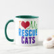 Ein niedliches Geschenk für einen Besitzer, dass Lieben süße Katzen aus dem Tierheim retten und ihnen eine liebevolle Zuhause geben. Meine Rettungskatzen sind in Orange, Rot, Grün, Blau geschrieben und lila für eine lustige, farbenfrohe Tasse für einen Kätzchen-Liebhaber.