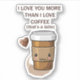 Ich Liebe Sie mehr als ich Liebe Kaffee, das ist e Aufkleber