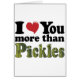 Der lustige Artikel sagt, ich Liebe dich mehr als Pickles. Macht ein lustiges Geschenk für den Pickle Liebhaber in Ihrem Leben.