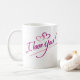Ich Liebe dir Tasse. Teilen Sie Ihre Liebe für Ihren Ehemann, Liebhaber oder Liebende mit. Man kann die Tasse personalisieren, indem man unterhalb des Ausdrucks, den ich Liebe, hinzunimmt, "Mama oder Papa, Bruder, Schwester..." oder man kann es so verlasse, wie es ist.