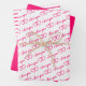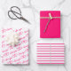 Diese Packpapierbögen bestehen aus einem weißen Blatt mit rosa Herzen und den Worten "I Liebe You", einem massiven rosa Blatt und einem weißen Blatt mit rosa Streifen.