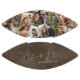 Vintager Valentinfußball mit rustikalem Imitat brauner Ledereffekthintergrund, eine Foto-Collage mit 12 quadratischen Bildern, die Sie durch Ihre eigenen ersetzen können, das Sprichwort "I Liebe You" in einem schwarz-goldenen Schriftart und der Name, von wem es stammt.