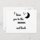 Diese bezaubernde Postkarte hat die Wörter, die ich dir zum Mond Liebe habe und auf denen du schwarz bist. Mit einem Mond und Sternen in schwarz.