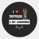 Ich Liebe Tattoos und mein Doberman Pinscher Hund Runder Aufkleber