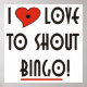 Großes Poster für einen Bingo Lover. Grosser schwarzer Brief mit rotem Herz. Ideal, um Ihren Lieblings-Bingo-Spot oder Hobby-Zimmer zu dekorieren.