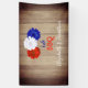 Ich mache GRILLEN mit patriotischen Rot-, Weiß- und Blautönen vor rustikalem Holzhintergrund