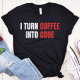 Verschmelzen Sie Ihren Code mit Koffein in unserem I Turn Coffee in Code Stück! Es ist ein Software-Entwickler-Design für weibliche und männliche Programmierer, Software-Ingenieure, und besonders für Frauen in der Technik.