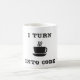 Eine klassische weiße Tasse mit einem Bild einer Kaffeetasse und die Texte, ", das ICH" oben und "ZU CODE" unter die Schale MACHE. Zeigen Sie, was Sie als Kodierer produktiv sein müssen.