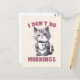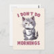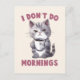 Beginnen Sie Ihren Tag mit einer Touch Spaß und felinem Charme mit der Postkarte "I Don't Do Mornings"! Dieses hübsche Kunstwerk mit einer schläfrigen grauen Katze und einer Tasse Kaffee ist perfekt für Katzenliebhaber und Kaffeefreunde. Dieses Design ist ein Geschenk für jeden, der kein Morgenmensch ist, und verleiht dem Alltag eine spielerische Drehung.