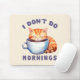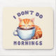 Genießen Sie Ihre Morgengrauheit mit diesem bezaubernden Mousepad mit einer niedlichen orangefarbenen Katze und dem witzigen Satz "I Don’t Do Mornings". Dieses spielerische Design ist perfekt für Katzenliebhaber, Kaffeefreunde und Nachtschwärmer geeignet, um die Essenz derer zu erfassen, die Kaffee benötigen, bevor sie den Tag beginnen. Ein tolles Geschenk für Katzenfreunde und mürrische Morgenpersönlichkeiten!