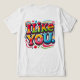 Das Design des T - Shirt "I Like You" zeichnet sich durch einen spielerischen, handgezeichnet Satz in fett gedruckten, sonderbaren Buchstaben aus. Der Text ist der Brennpunkt, geschrieben in einem lässigen, freundlichen Schriftart mit lebhaften Farben, sodass er ein angenehmes und ansprechbares Ambiente schafft. Um die Worte herum gibt es kleine Doodles wie Herzen, Sterne oder Smiley, um die positive und leichte Botschaft zu verbessern. Das Design fühlt sich frisch und jugendlich an, perfekt für die Verbreitung von Positivität und guten Vibes.