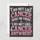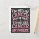Der Ausdruck "Ich mag Krebs hier oder da nicht", der mit einem leidenschaftlichen Geist innewohnt, bietet eine humorvolle Haltung zu einem ernsten Thema. Es ist perfekt, um Lächeln und Lachen zu jenen zu bringen, die Krebs bekämpfen oder Angehörige durch harte Zeiten unterstützen.