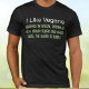I Like Vegans Funny Putdown T - Shirt beinhaltet einen großen Text, der sagt: "I Like Vegans", gefolgt von einem kleineren, hellgrünen Text, der sagt: "verpackt in Speck, mit braunem Zucker bestreut und gebacken, bis der Zucker blubenartig ist". Nicht wirklich für Kannibalismus eintreten, obwohl das Rezept für dunkle Spaß für Veganer bedeutet, dass Veganer lecker sein können. Dieses humorvolle anti-vegane Sprichwort macht Spaß und macht ein lustiges Geschenk für einen Mann oder eine Frau, vegan oder nicht vegan - für jeden, der ein Gefühl von Spaß hat. Mehr lustige Geschenke sowie einige nette für die ganze Familie finden Sie in unserem Shop unter zazzle.com/VicesAndVerses.