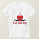 Großartiges Renndesign für den Rennfahrer. Ein großes Herz mit Schachbrett-Fahnen durchquert in der Mitte. Rennwagen auf beiden Seiten machen dies zu einem einzigartigen "I Heart Design".