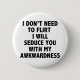 Ich muss nicht flirten, ich werde dich mit meinem Awkwardness-Knopf verführen. Die Phrase "Ich muss nicht flirten, ich werde dich mit meiner Unbehagen verführen", gedruckt in Abadi MT Condensed Light Schriftart. Ein großes Geek-Spaß-Geschenk für schüchterne und sozial unbeholfene Menschen.