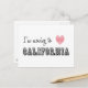 "Ich bin auf dem Weg nach Kalifornien" Spaß, Retro-Grafik. Vintages Postkartenstyling.