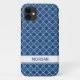 Kundengerechter Kasten des Telefons 5 des Namens I im eleganten dunklen Marineblau- und weißemmutigen marokkanischen quatrefoil Muster. Personifizieren Sie diesen Kasten mit Ihrem Namen oder anderen Text für einen wirklich einzigartigen Telefonkasten. Treten Sie mit uns für eine kundenspezifische Farbe in Verbindung.
