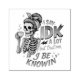 Lebhaftes, farbenfrohes Design mit einem weiblichen Skelett, das Kaffee schlängelt. Der farbenfrohe Text lautet: "Ich sage IDK viel, aber vertraue mir, ich weiß". Dieses Design ist auf einer Vielzahl von Produkten erhältlich.