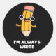 Ich schreibe immer Funny Pencil Pun Dark BG Runder Aufkleber